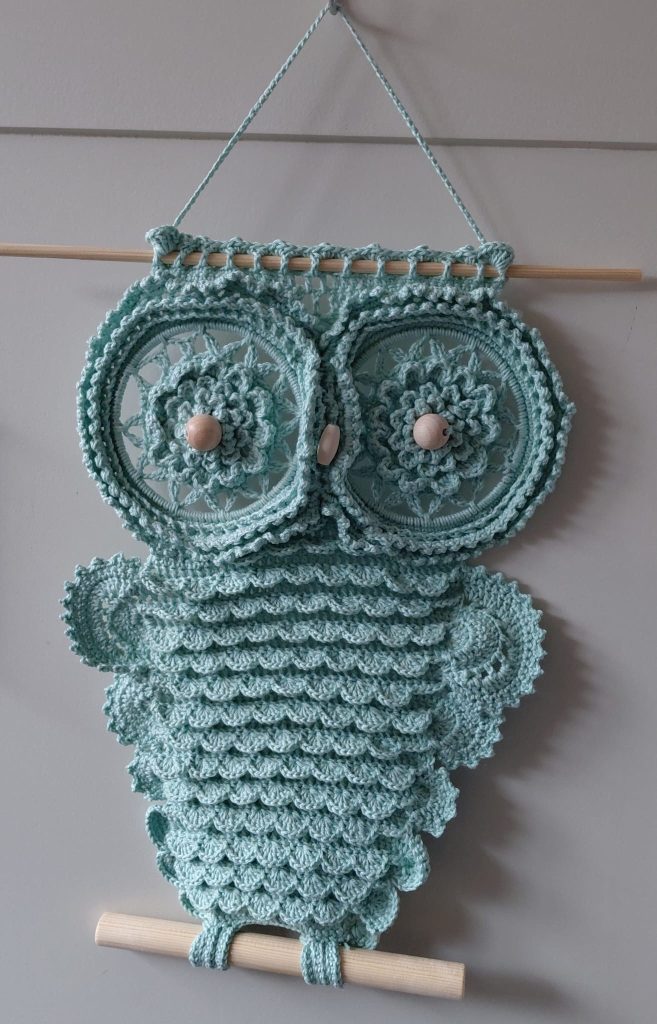 In dezelfde stijl haak ik een wandkleed. Ik heb mezelf geleerd om een wandlap met lijst te haken . Het is even uitdenken ….. .maar dan heb je een heuse lijst om je haakwerk heen.