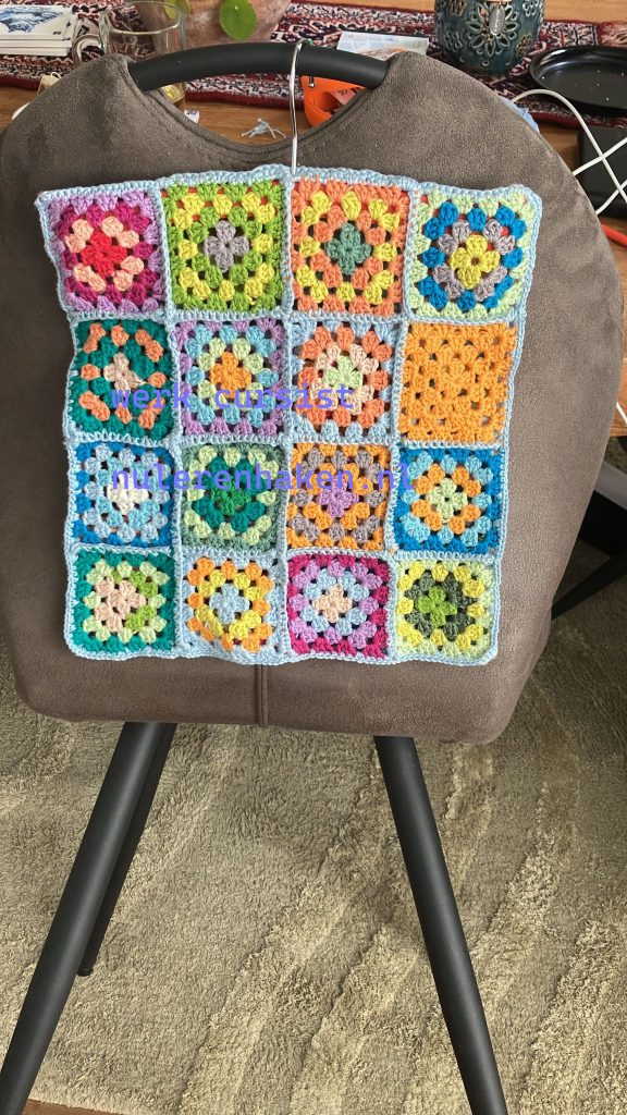 Nu ga ik beginnen aan patchwork met grannysquares. hiervoor gebruik ik de moeilijkere varianten die verwantschap hebben met het Ierse haken.