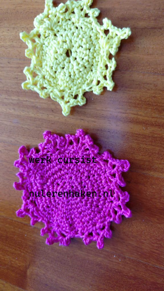 Vaak wissel ik haakwerk in katoen af met haakwerk in fijn garen …Ik heb nog onderzetters nodig voor mijn plantenpotten…