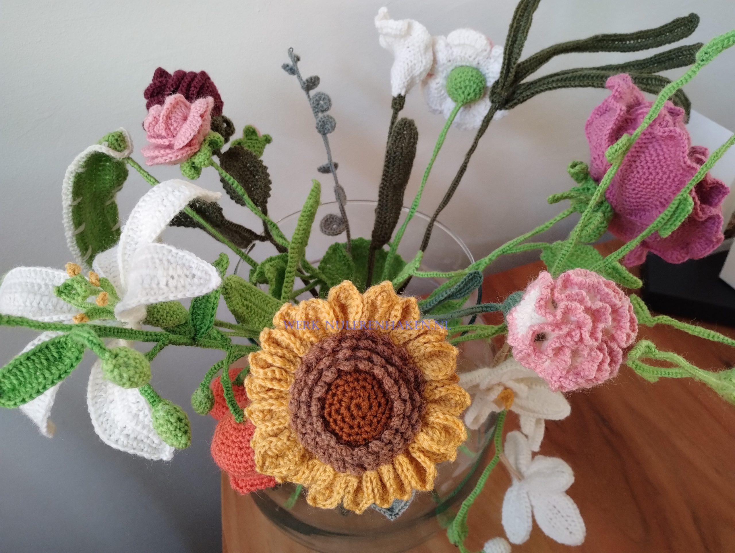 -bloemboeketten haken: bloemen leren haken die op echt lijken, een boeket met jouw voorkeurs bloemen haken.